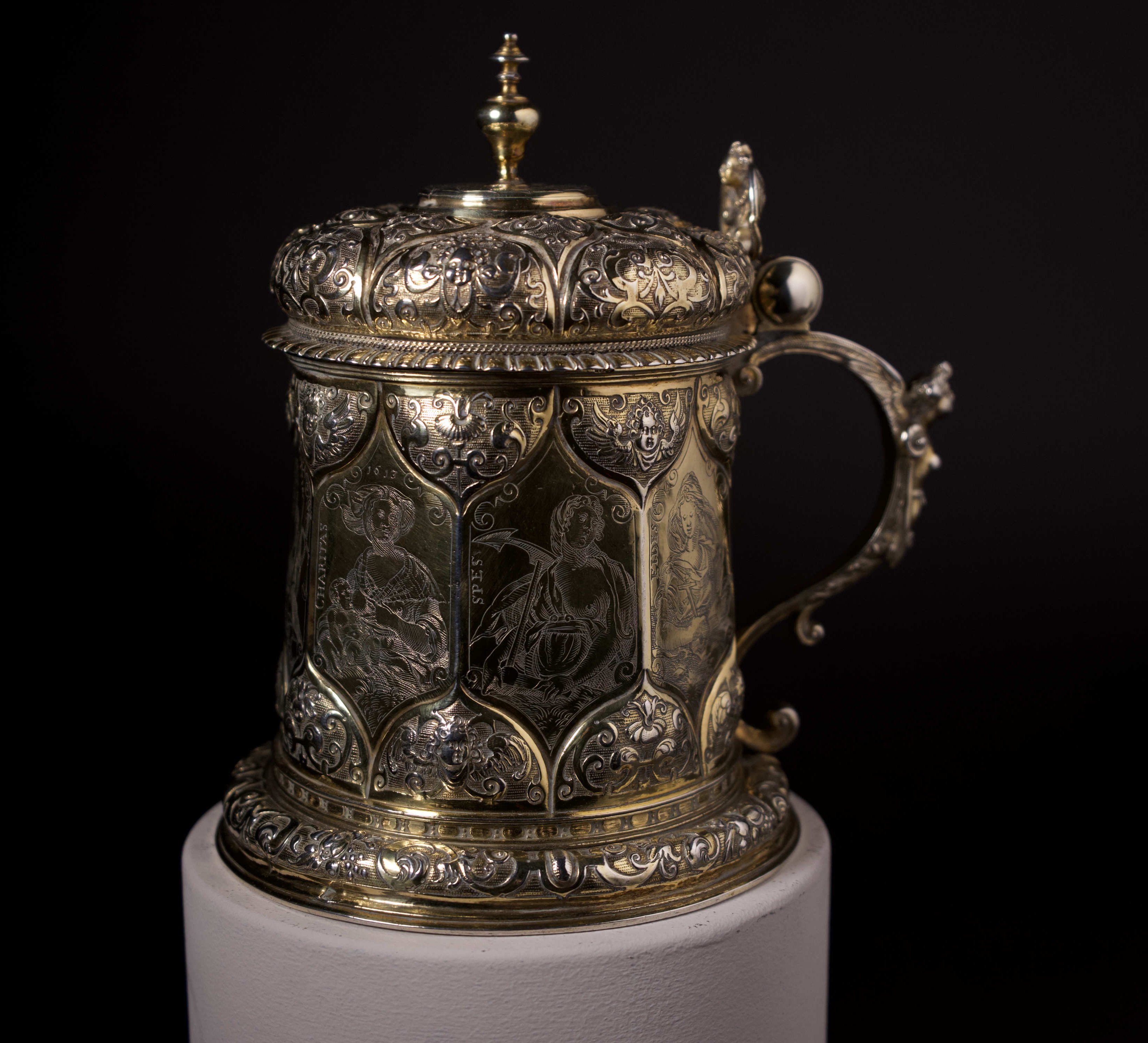 Silber, gegossen, getrieben, graviert, teilvergoldet;