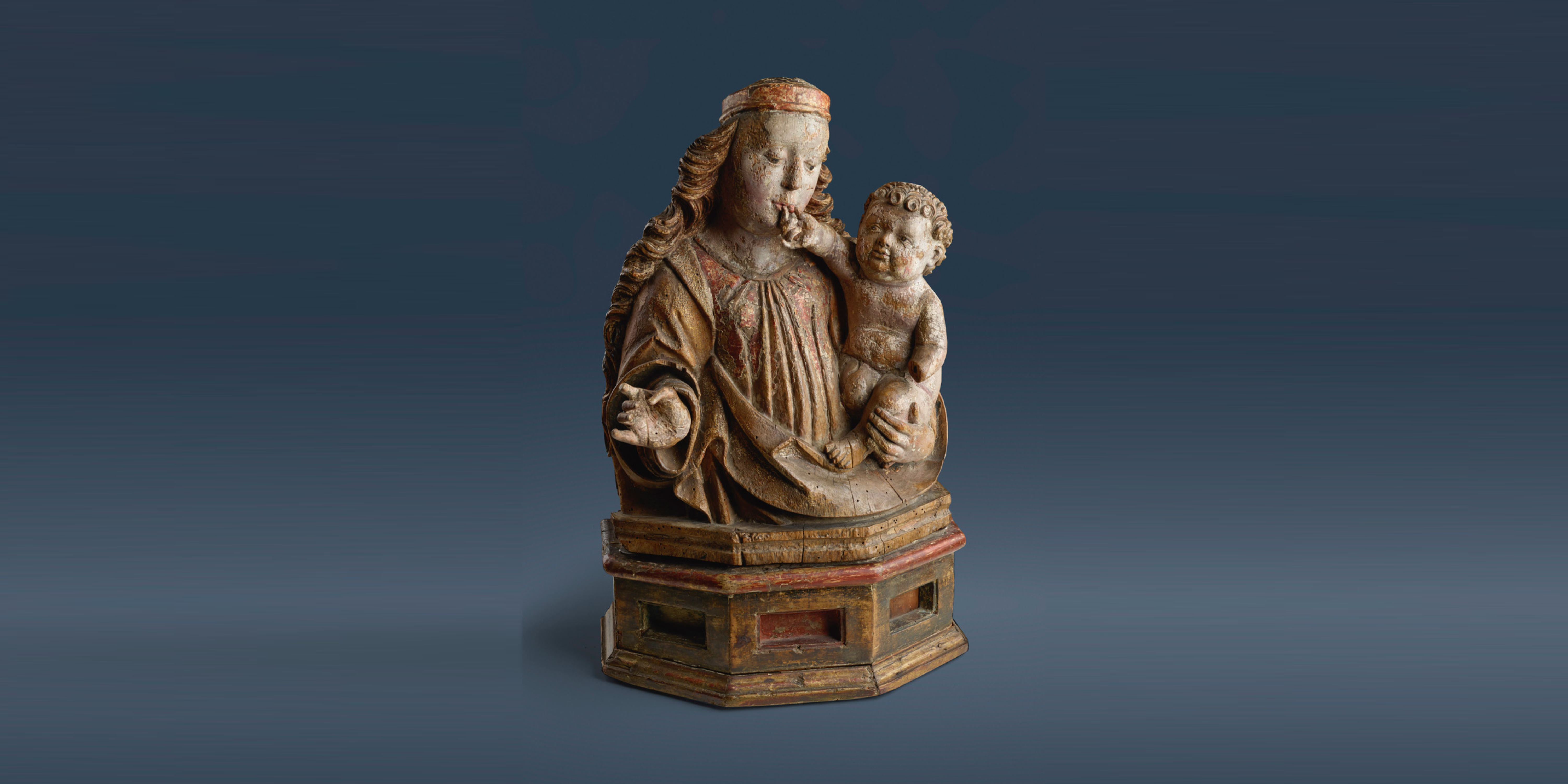Provenienz: ehemals Sammlung des Bayerischen Nationalmuseums München, Inventarnummer: 1493 MA, 860 KVI. Literatur: Katalog des Bayerischen Nationalmuseums: Das Mittelalter, II. Gothische Alterthümer der Baukunst und Bildnerei, Dr. Hugo Graf (Hg.), Bd. 6, München 1896, S. 54, Nr. 860.
